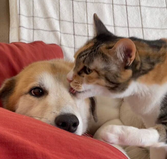 「大変な今の世の中、先が見えなくて不安でいっぱいですが、コロとチコが仲良くしている姿を見ていると、幸せな気持ちになります。コロとチコの存在が、私たち家族にとってどれだけ癒しになっているか…これからも最高の癒しを求めて過ごしたいと思います!」