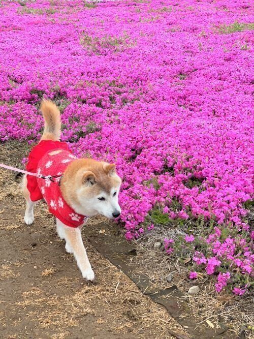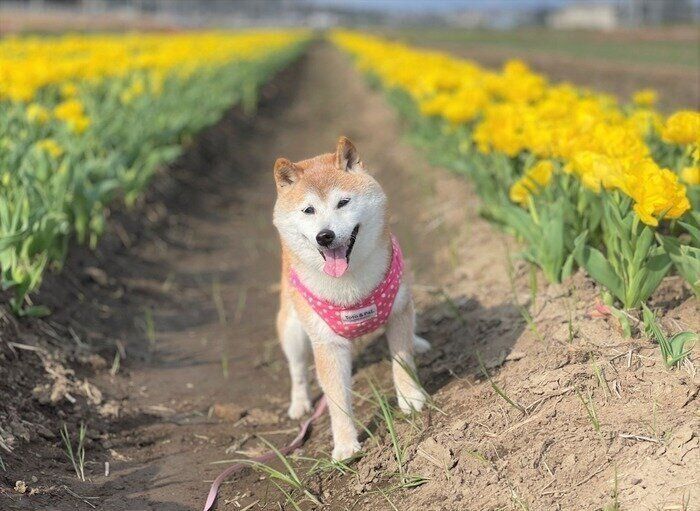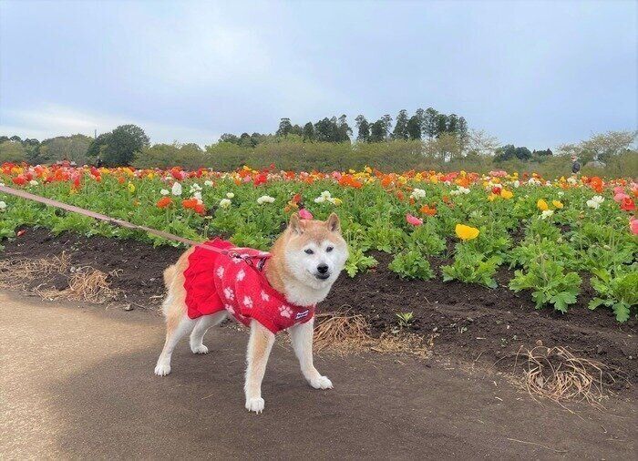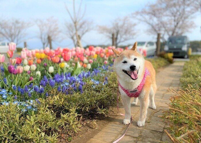 振り返ればどれも笑顔!柴犬かぼすちゃんとのお花見