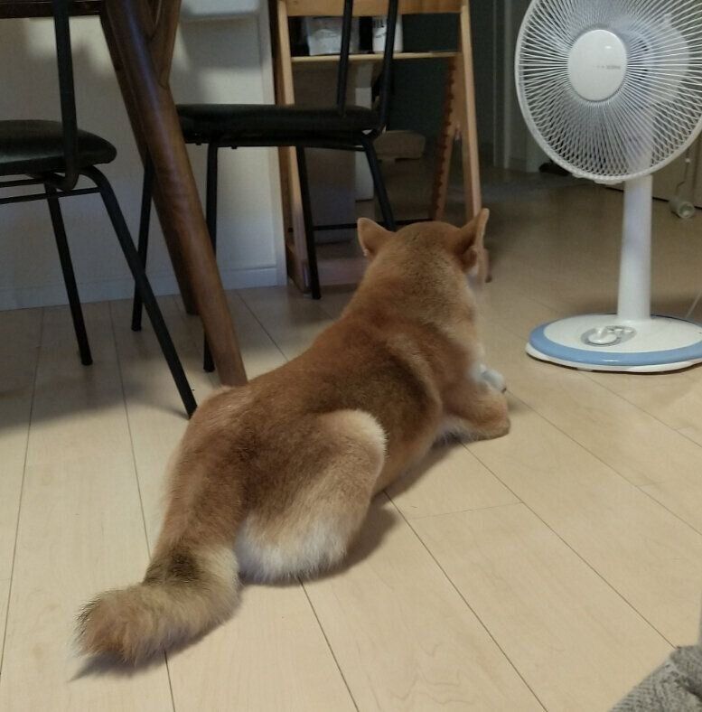 賢く涼む柴犬タロさん。分かってやっている!? |連載「モフモフ柴とプニプニ娘」第133話