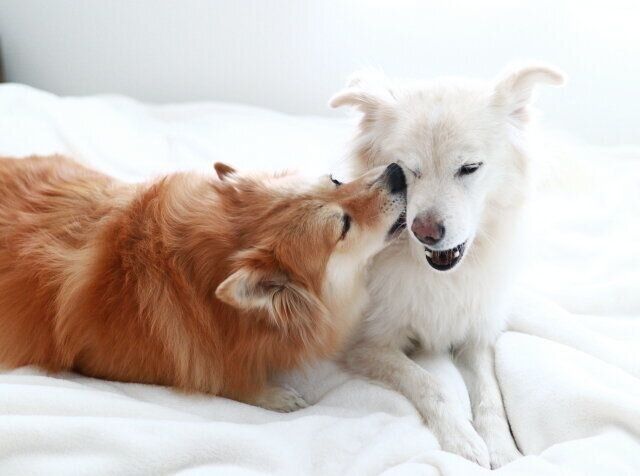 夜ゴハン後のまったり時間。兄柴の顔に"どっかり"座る弟柴の姿に、飼い主さんもびっくり。わんぱくな弟犬と優しい兄犬の関係性が話題です。