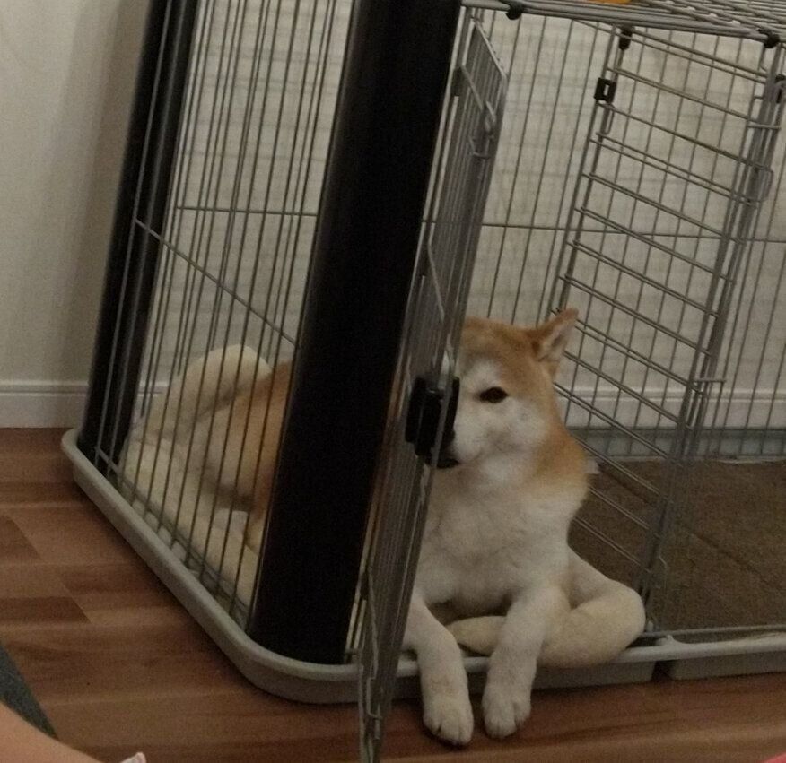 ケージの中で“ちんまり”と座る子犬・みみちゃん。幼いながら指示を理解し、成長とともに“陽キャ犬”として近所でも人気者に! 飼い主さんが語る愛らしい日常を紹介します。