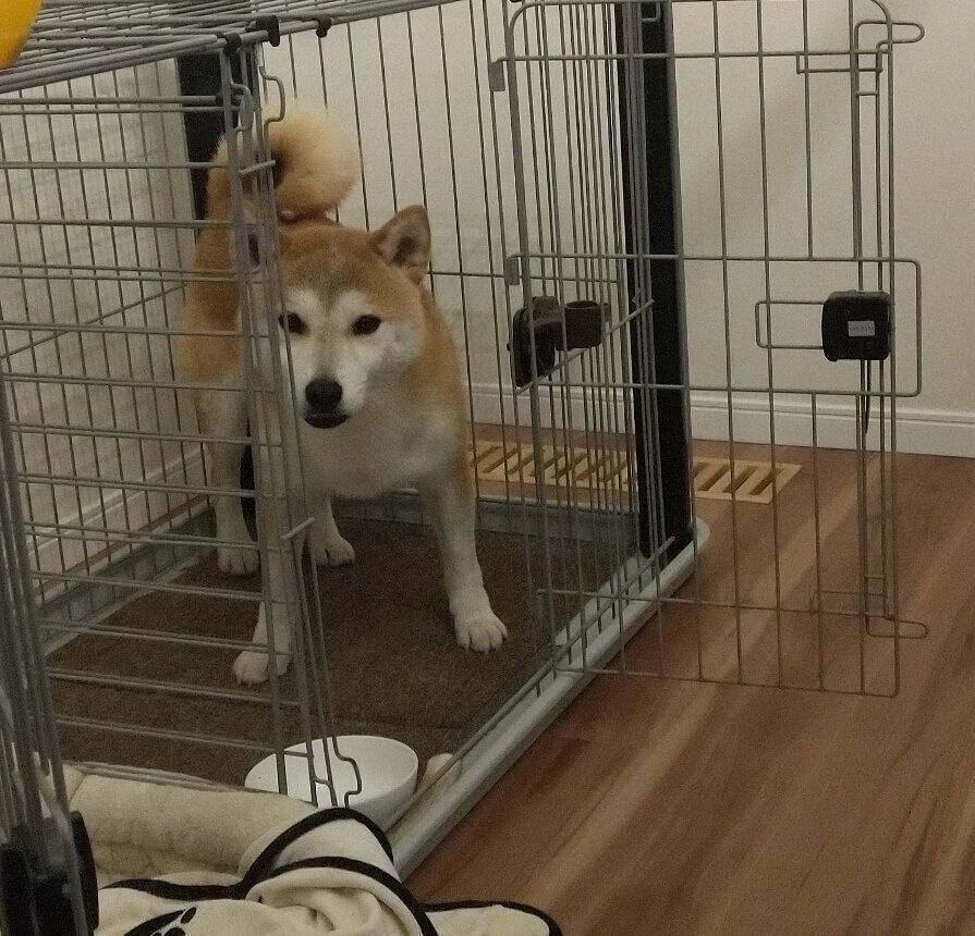 ケージの中で“ちんまり”と座る子犬・みみちゃん。幼いながら指示を理解し、成長とともに“陽キャ犬”として近所でも人気者に! 飼い主さんが語る愛らしい日常を紹介します。
