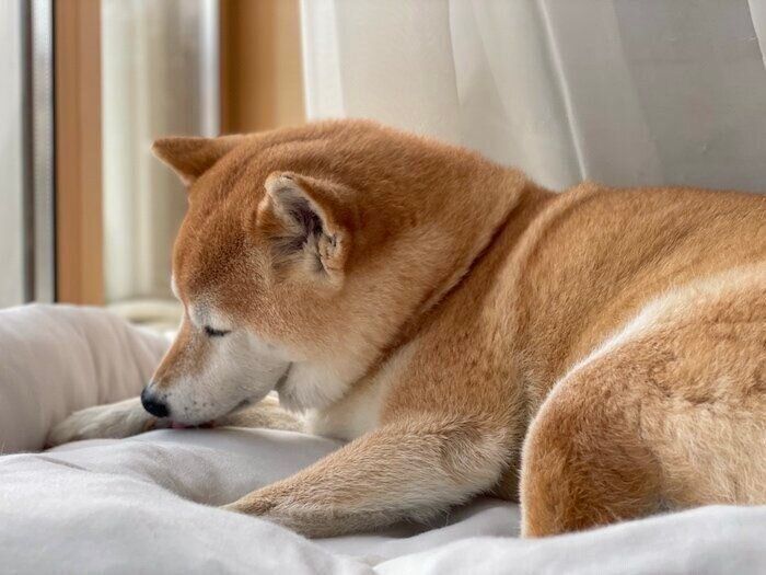 紹介するのは、Instagramユーザー@momiji_diarioさんの愛犬・椛ちゃん(取材時・推定15カ月)。こちらは海辺を散歩しているときにリラックスした様子を見せる椛ちゃんの写真です。そんな椛ちゃんは元保護犬。生後3カ月くらいで飼い主さんのお家にお迎えされました。