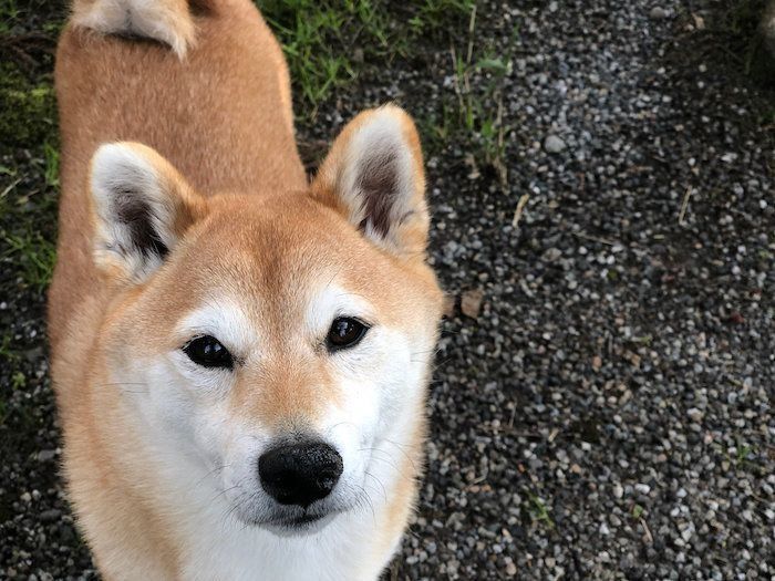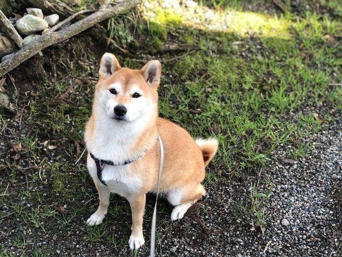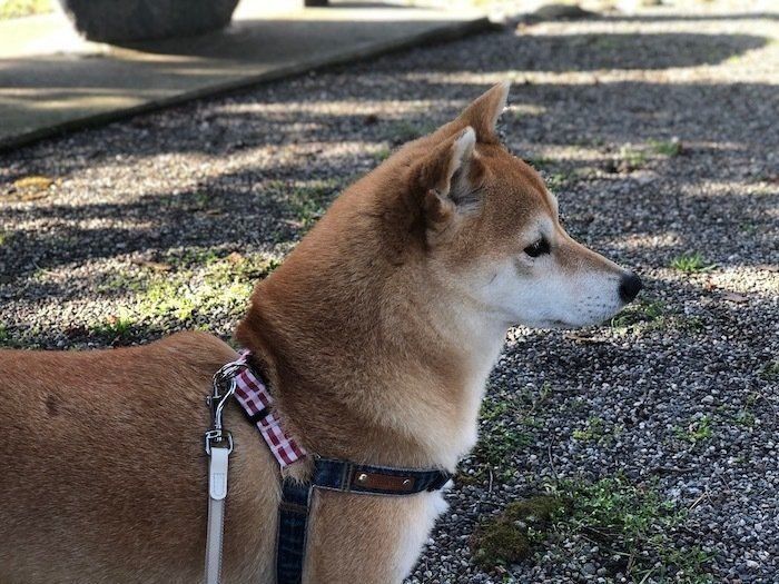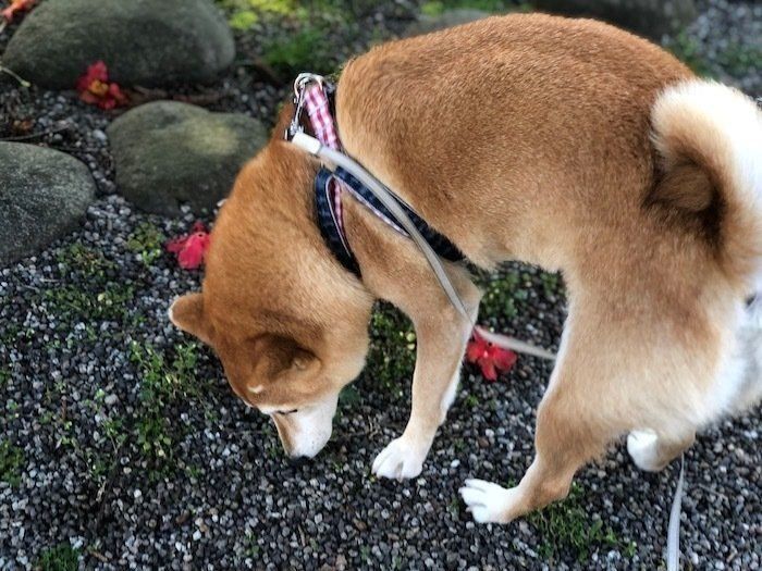 柴犬マロたん、じぃじによく似た背中にびっくり。飼い主号泣のお散歩道。