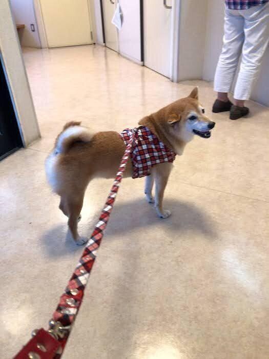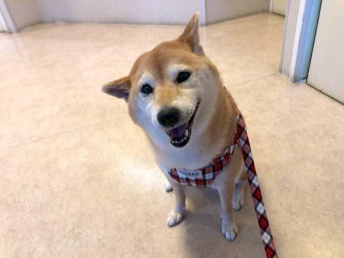 外耳炎の治療中、早くよくなるようにおりこうに頑張る柴犬マロたん