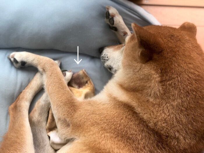 夜ゴハン後のまったり時間。兄柴の顔に"どっかり"座る弟柴の姿に、飼い主さんもびっくり。わんぱくな弟犬と優しい兄犬の関係性が話題です。