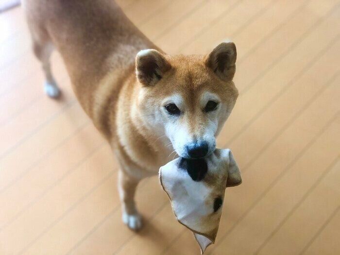 柴犬マロたん、大好きなじぃじの匂いが分かった?じぃじの匂いがついたタオルと一緒に…