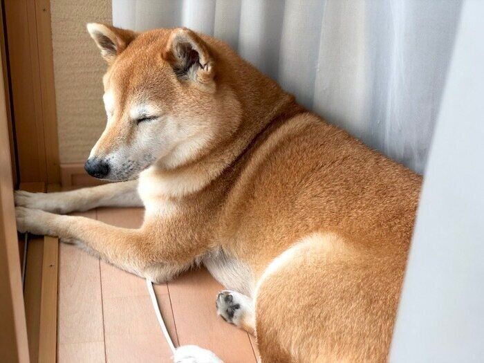 ひなたぼっこで”ホットドッグ”!?暑さにご注意!の柴犬マロたん