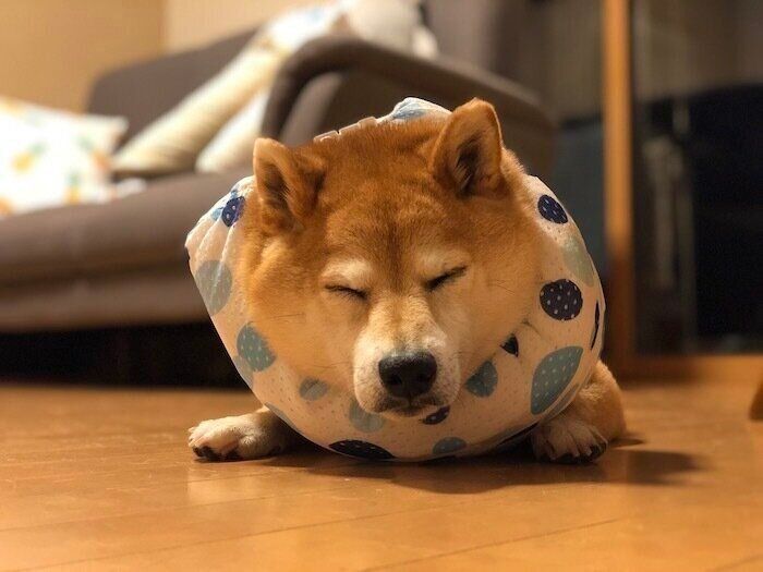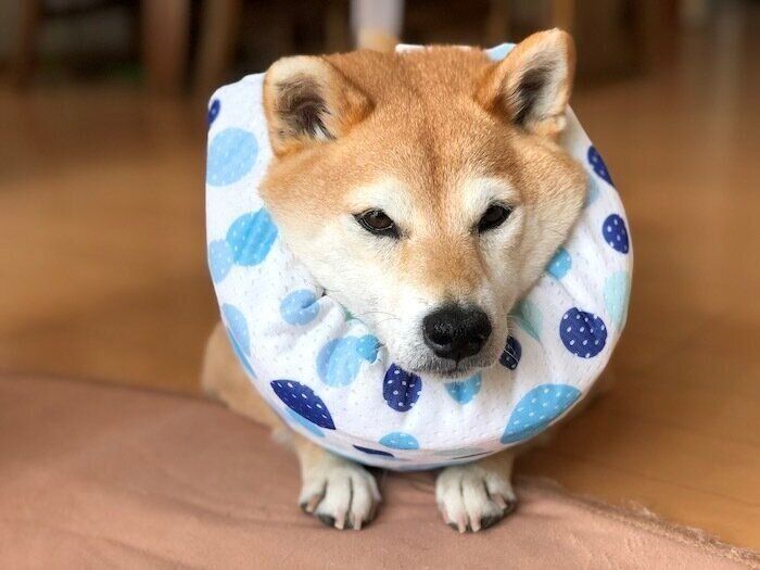 柴犬マロたん、アトピー治療中のためエリザベスカラー装着を続けて頑張っています!