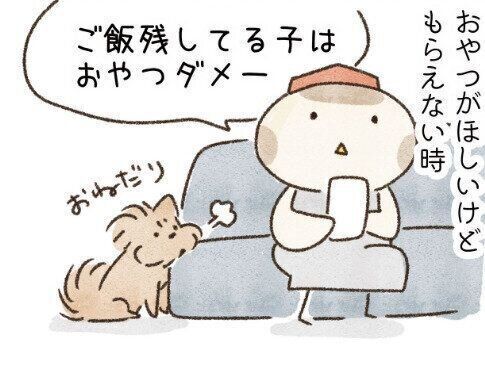 【連載】こぐま犬てんすけ おやつ欲しさにトイレに急ぐ犬。でもさっきしたばっかりだから⋯じゃあ、と水分補給しに急ぐ。おやつのためにがんばる犬のお話です。