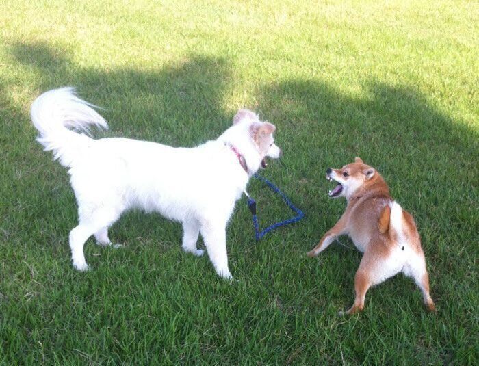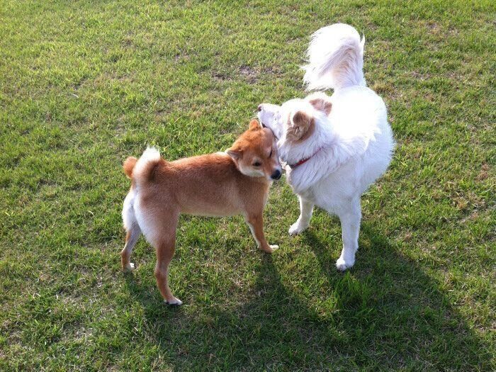 「かかってこいやー!」柴犬マロたん、大先輩ワンコのゆうちゃんに挑んだ思い出、一緒に遊んで学んだこと