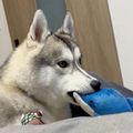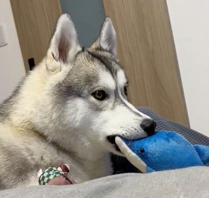 紹介するのは、X(旧Twitter)ユーザー@gry0718さんが投稿していた動画。お気に入りの「イルカのぬいぐるみ」を“ハムハム”と噛んで遊んでいる愛犬・グレイくん(撮影時1才8カ月/シベリアン・ハスキー)が映っています。「ソファでグレイとまったりしていたところを撮影した」という動画ですが、カメラはこのあと、グレイくんの可愛らしい姿を捉えたようです。