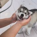 片方の手のひらにおさまるほど小さかった生後3週齢のハスキーの子犬→1年半後の「ずっしりと大きくなった姿」にほっこり!