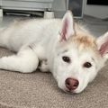 紹介するのは、X(旧Twitter)ユーザー@remchan_0215さんの愛犬・レムちゃん(取材時3才/シベリアン・ハスキー)。「#お迎え3日目の天使」とタグをつけて投稿された写真には、生後2カ月のレムちゃんが写っていました。ゴロンと寝転がり、あどけない表情を浮かべています。飼い主さんに話をうかがうと、撮影当時のほっこりする出来事が聞けました。