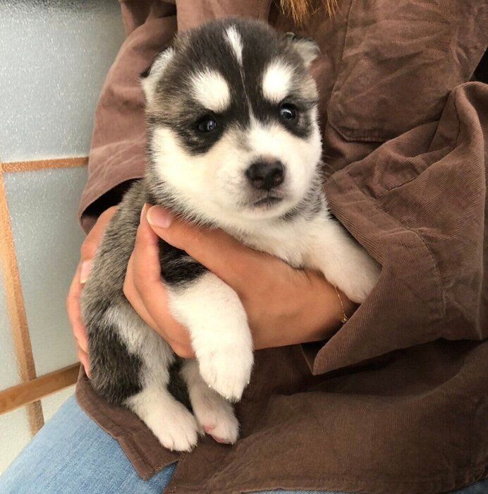 抱っこされる姿が「あまりにも可愛すぎた」生後2カ月のハスキー子犬→約5カ月後、大きく立派に成長!