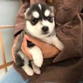 紹介するのは、X(旧Twitter)ユーザー@dorami0129さんが投稿していた、愛犬・ゆきちくん(取材時6才/シベリアン・ハスキー)の子犬時代の写真。お迎え当日に撮影した「生後3カ月のゆきちくん」です。ゆきちくんと家族になった日に撮った思い出の写真について、飼い主さんに話を聞きました。