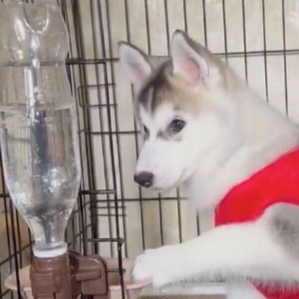 「生まれて初めて水の泡を見た」ハスキーの子犬 「完全にフリーズ」する姿が話題に!