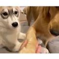 「オテ」の練習中だったハスキー子犬→まさかの“横取り犯”が登場! ツッコミ必至の展開にクスッ