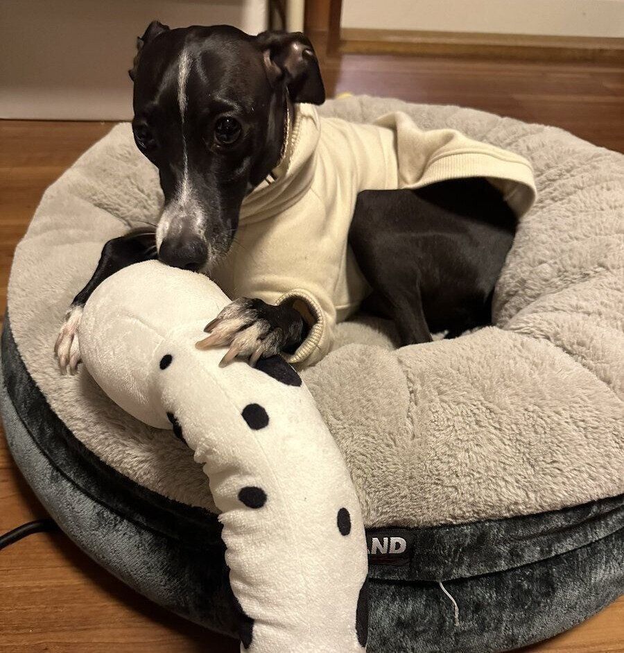 X(旧Twitter)ユーザー@milano____mさんはイタリアン・グレーハウンドのミラノちゃんの飼い主さん。引越の荷物整理でボロボロになったぬいぐるみをゴミ袋に入れると、ミラノちゃんが救出して大事そうに抱えていたそうです。
