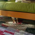 かわいい顔でまわりを振り回しちゃう小さな柴の小悪魔犬『こむぎ』です。今回は、こむぎの寝床エピソードです。家の中をフリーで過ごしているこむぎは、昼間は座椅子の上やクッションの上で休んでいることが多いのですが、夜寝る時はテーブルやベッドの下で就寝します。
