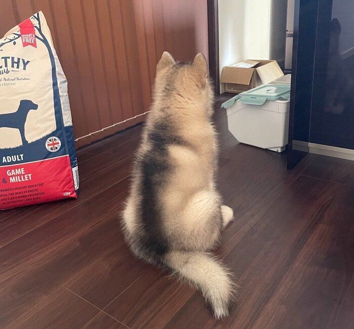 紹介するのは、X(旧Twitter)ユーザー@ara_aru6さんが投稿していた、愛犬・アルくん(取材時2才2カ月/アラスカン・マラミュート)の2枚の成長比較写真。1枚目の写真には、生後2カ月の頃に撮影したアルくんの後ろ姿が写っています。“ちょこん”と座っている小さな背中がなんとも愛くるしい! そんなアルくんは2才になりました。2枚目の写真を見て、アルくんの成長ぶりに驚くんです。