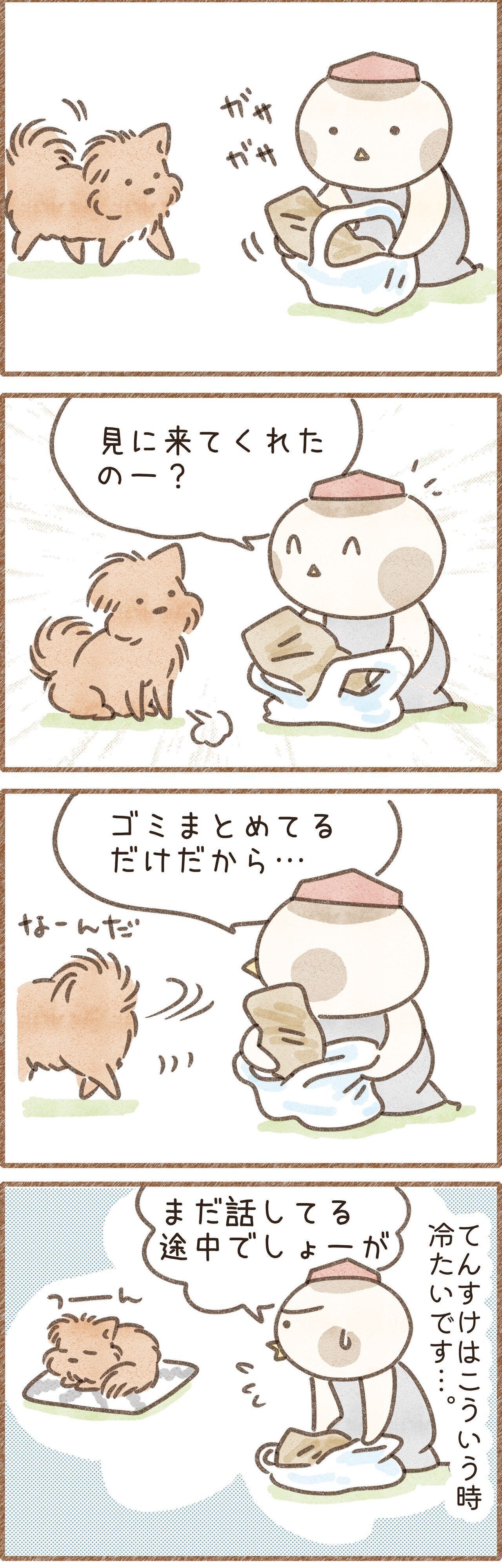【連載】こぐま犬てんすけ 怖がりわんこに懐かれると嬉しくなってしまう飼い主。それでも顔に出さないようにしています。