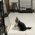 鏡に映る犬に触ろうと奮闘しているのはヨークシャー・テリアの媛ちゃんです。この日、初めて鏡を認識したという媛ちゃんの行動について、飼い主さんにお話を伺いました。