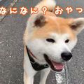 秋田犬のジロウくんはゆったりお散歩中です。少し疲れてしまったようなジロウくんですが 飼い主さんの「おやつ食べる?」の声に、お顔が輝く?