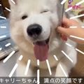 ハスキーのキャリーちゃん、飼い主さんにお顔の周りを梳かしてもらっています!コームに合わせて動くふわふわの毛から目が離せません♪ナデナデされているみたいで気持ちいのかな?嬉しさを抑えきれないキャリーちゃんの動画です。