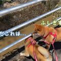 未知との遭遇!? お散歩中に流れてきた笹が気になっちゃう柴犬ズ♡