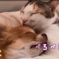 大好きがあふれている!猫に抱きしめてぺろぺろされ、なすがままの犬♡そして眠りの中へ