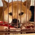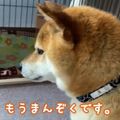 「あの人」にソックリ!? ケージの柵に鼻を乗せてくつろぐ柴犬