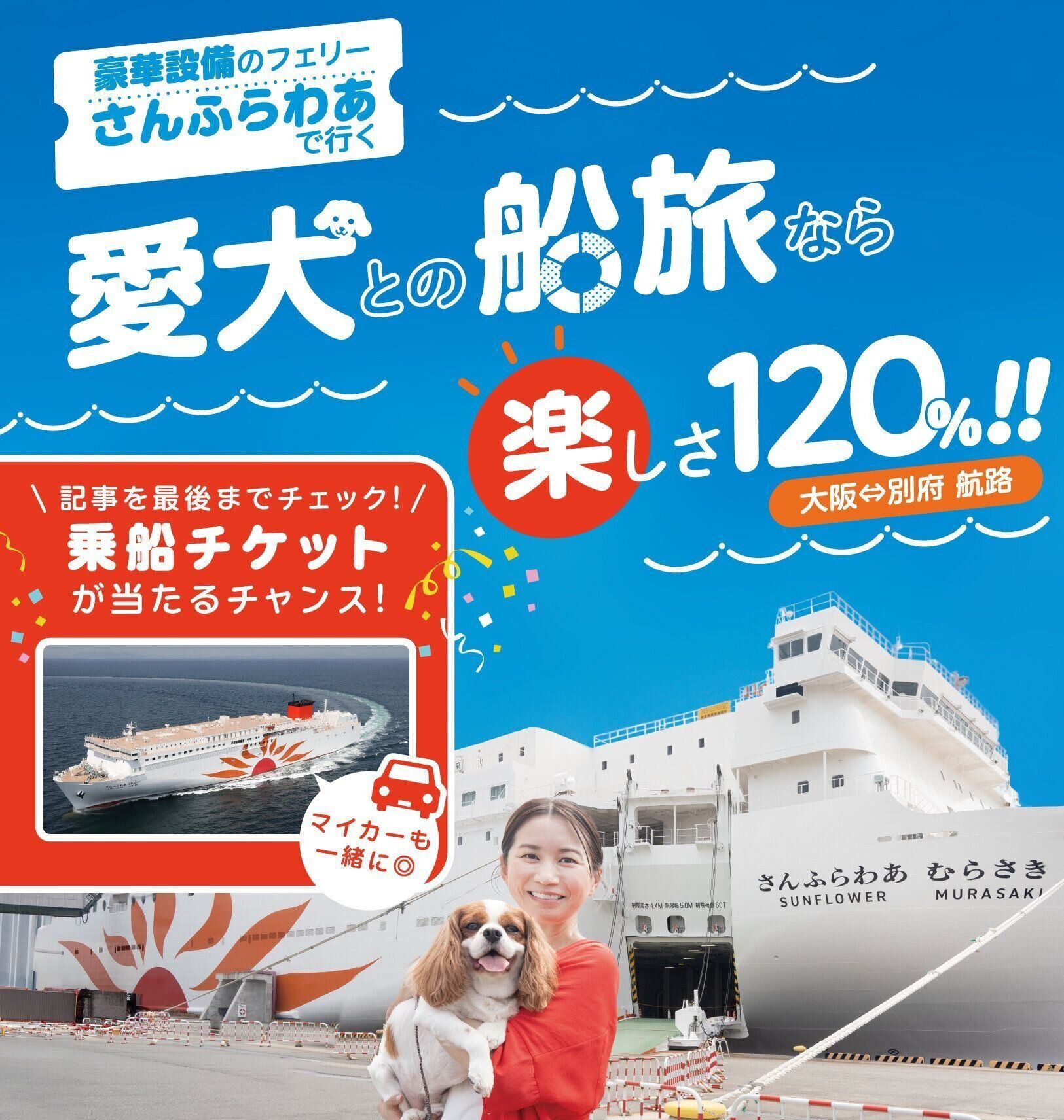 「さんふらわあ」は、関西〜九州を結ぶ豪華フェリー</strong>。実は<strong>愛犬と一緒に乗船・宿泊ができることをご存じですか?広々とした専用客室や船内のドッグランなど、愛犬連れに配慮された数々の設備を備え、愛犬との特別な船旅を満喫することができます。 今回は、初めてフェリー旅を体験する愛犬(メロディちゃん・4才/キャバリア・キング・チャールズ・スパニエル)と飼い主さんの旅の様子をご紹介します。