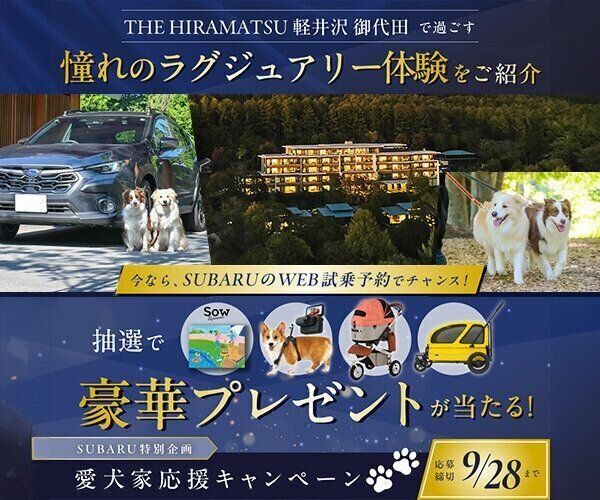 澄んだ空気に包まれた森のリゾートへ、愛犬と一緒に特別な旅へ…!今回は、<strong>SUBARUの「宿泊プラン付きモニター試乗キャンペーン</strong>(※)<strong>」</strong>に参加されたご家族と愛犬のルナちゃん(ボーダー・コリー/4才)・アリスちゃん(ボーダー・コリー/2才)の軽井沢ドライブ旅をご紹介します。 <font color=gray>※こちらのキャンペーンはすでに終了しています。</font>
