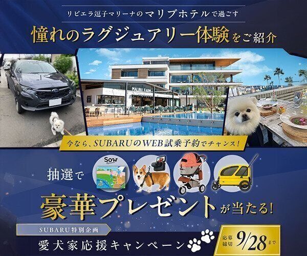 憧れのホテルでラグジュアリーな休日を、愛犬と一緒に過ごしてみたい…!今回は、そんな飼い主さんにぜひご覧いただきたいレポートをお届け。SUBARUの「宿泊プラン付きモニター試乗キャンペーン」(※)」に参加したご夫婦と愛犬ハクちゃん(5才)のドライブ旅行記をご紹介します。 ※こちらのキャンペーンはすでに終了しています。