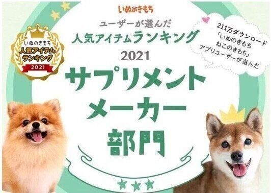 サプリメントメーカー部門ランキング いぬのきもちユーザー人気ランキング2021