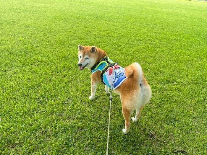 柴犬マロたん「犬に洋服を着せることへの理解が深まったかもしれない暑い夏の日」