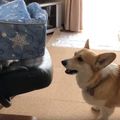 何が隠れてる?イスの上にあるものを見つけて取ろうと奮闘するコーギー