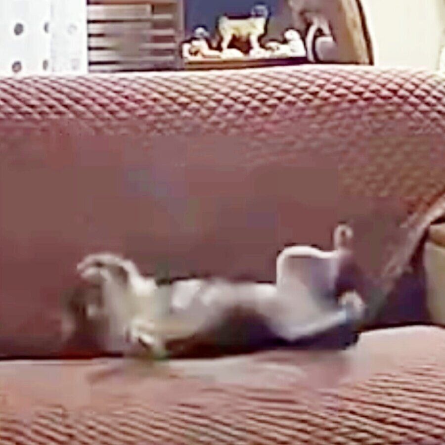 留守中、愛犬の様子をペットカメラで見る飼い主さんは少なく無いでしょう。X(旧Twitter)では、ソファの上に乗ってコテンと寝転がる愛犬の姿を目にした飼い主さんの投稿が話題に。“クセ強め”の寝方が注目を集めています。詳しいお話を伺いました。