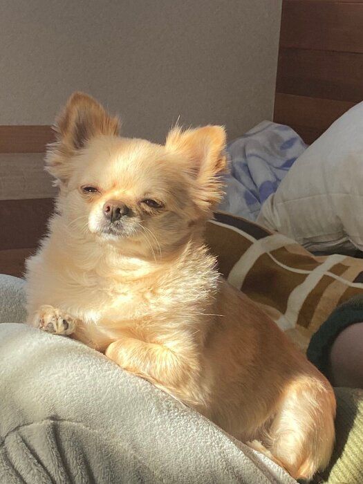 暖かな日差しに思わず“虚無顔”!ひざの上で見せるチワワの"何とも言えない表情”に「かわいい!」の声が集まる!