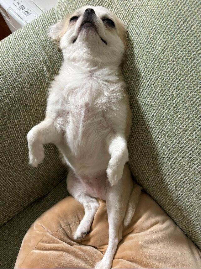 ご紹介するのは、X(旧Twitter)に「怠惰のお誘いが魅力的すぎる」といったコメントともに投稿された愛犬の写真。今回は飼い主さんに取材を行い、当時の状況やふだんの様子などについて、詳しくお話を伺いました。