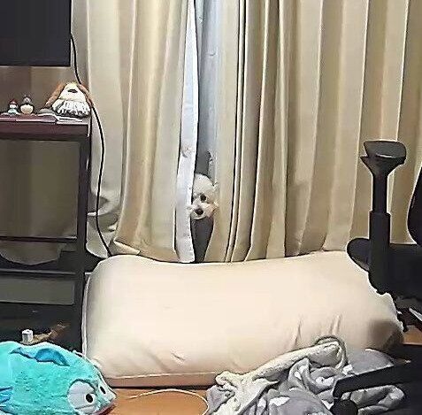 「どこにいるの?」留守番カメラに映る愛犬がカメラを見つめている!その姿に思わずキュン