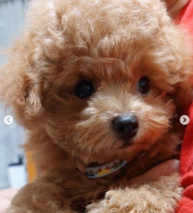 紹介するのは、X(旧Twitter)ユーザー@danmama29910300さんの愛犬・だんごくん(取材時7才/トイプードル)。こちらは、飼い主さんがだんごくんをお迎えした初日の写真です。このとき、当時一緒に暮らしていた2匹の先住犬がだんごくんに付いて回っていたのですが、飼い主さんはどうにかしてだんごくんだけの写真が撮りたくて、膝の上に乗せて撮った一枚なのだそうです。