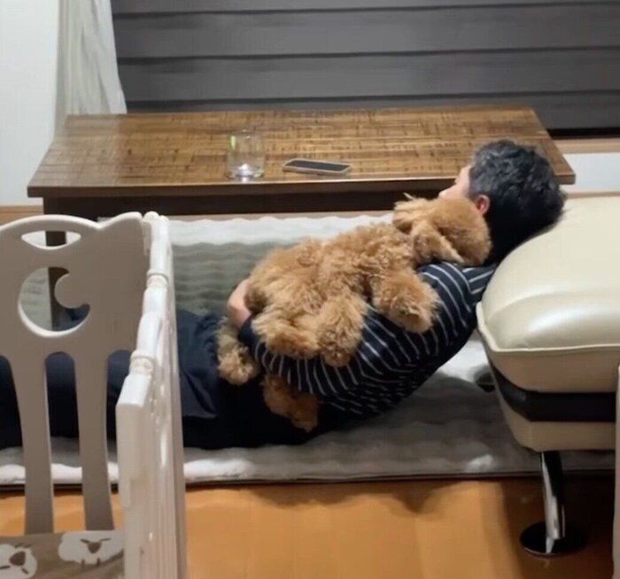 紹介するのは、Instagramユーザー@cha_kotaroさんが「もう、メロメロですよ 結局ね、こうなるんです。犬ってすごい。どうぶつってすごい。これからも家族の愛情をたくさん受けて育ってね」と投稿していた、こちらの動画。飼い主さんの父に抱かれて、まったりくつろぐ愛犬・ちゃこたろうくん(撮影時、生後8カ月/トイ・プードル)が映っています。ちゃこたろうくんと父の“ラブラブっぷり”がよくわかる光景ですが、飼い主さんによると「半年前の父はちゃこたろうをお迎えすることを反対していた」のだとか!