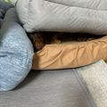 「隠れている場所わかる?」 クッションが大好きな愛犬は、クッションの中に入るのが上手だった!クッションの中に上手に隠れている音瑠ちゃん。クッションが大好きだという音瑠ちゃんは、クッションに隠れるのも上手なようです。今回は、撮影当時の様子と、ふだんの音瑠ちゃんの様子について飼い主さんにお話を伺いました。