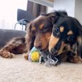 体格差で不利だけど…大きい相手に挑むワンコが必死でかわいい♡ミニチュア・ダックスフンドの九絵ちゃん♪ じゃれあうことが多いワンコたちですが、犬種によっては、ちょっぴりしんどいこともあるみたい…(*´Д`) 九絵ちゃんは、大きなワンコに立ち向かうのですが……