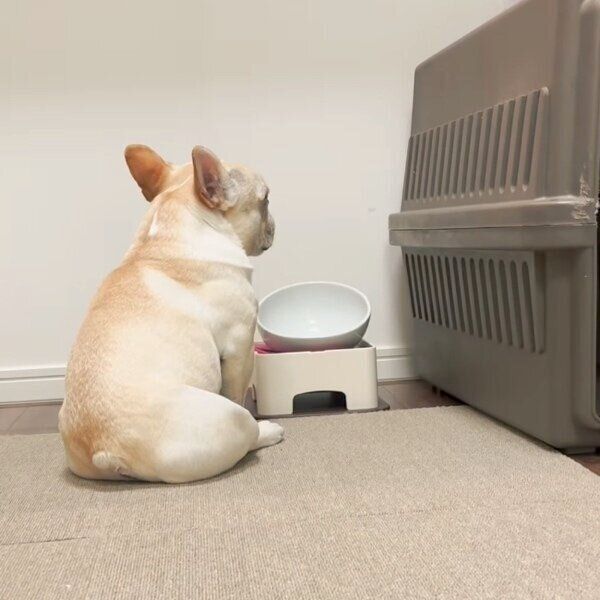 フードボウルの前でじっと動かない犬 おかわりが欲しくて「背中で語る姿」に思わず爆笑!