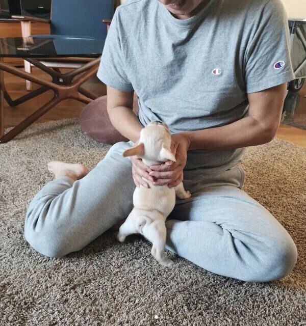 紹介するのは、Instagramユーザー@raku_0911さんの愛犬・らくくん(取材時1才8カ月/フレンチ・ブルドッグ)。こちらの写真は、らくくんが飼い主さんの家に来て4日目の夜に撮影したものだそう。まだ生後3カ月の子犬で、あどけない姿を見せているらくくん。飼い主さんは投稿で「これがへそ天というものでしょうか」とコメントしており、初めて犬の“へそ天”を見たといいます。らくくんの成長について、飼い主さんに話を聞きました。
