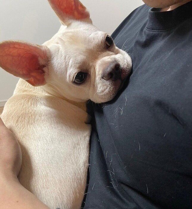 紹介するのは、Instagramユーザー@n_gumi130さんが投稿していた、こちらの写真。そこには、パパさんにギュッとくっつく愛犬・グミちゃん(撮影時、生後8カ月/フレンチ・ブルドッグ)の姿が写っています。飼い主さんに話を聞くと、仕事から帰ってきたパパさんに抱っこしてもらって甘えているときの様子だそう。グミちゃんの愛らしい姿をご覧ください。