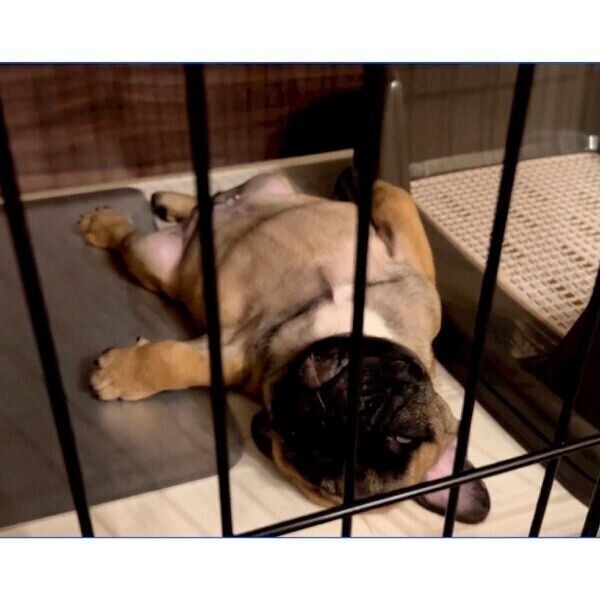紹介するのは、Instagramユーザー@charles.0531さんのエピソード。「リラックスしすぎでは」と投稿された動画には、ケージの中で大胆すぎるヘソ天寝をしている愛犬・シャルルくん(撮影時、生後2カ月/フレンチ・ブルドッグ)の姿が映っていました。お迎えして10日目に撮影したという動画について、撮影エピソードなどを飼い主さんに聞きました。